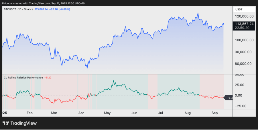 But on the flip side, if Bitcoin can climb back above that rolling performance line, this could be the line in the sand that restores confidence.